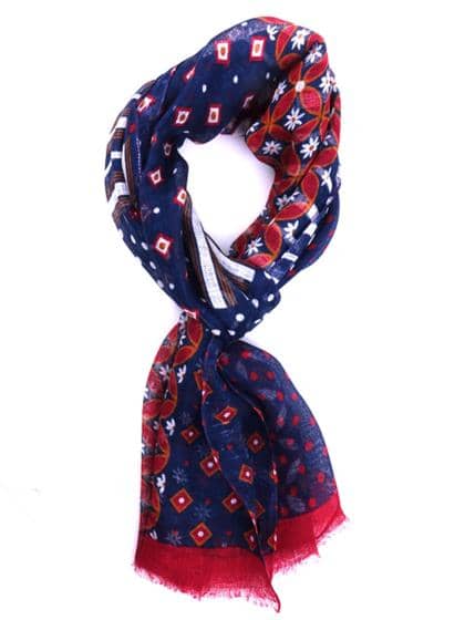 Pure Italian cotton gauze scarf. Printed with natural based inks and with excellent back pass. Dimensions: 90x200 cm. Large dimensions for an enveloping, full and soft effect.